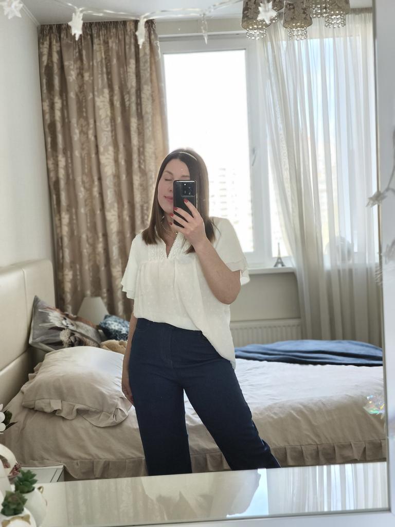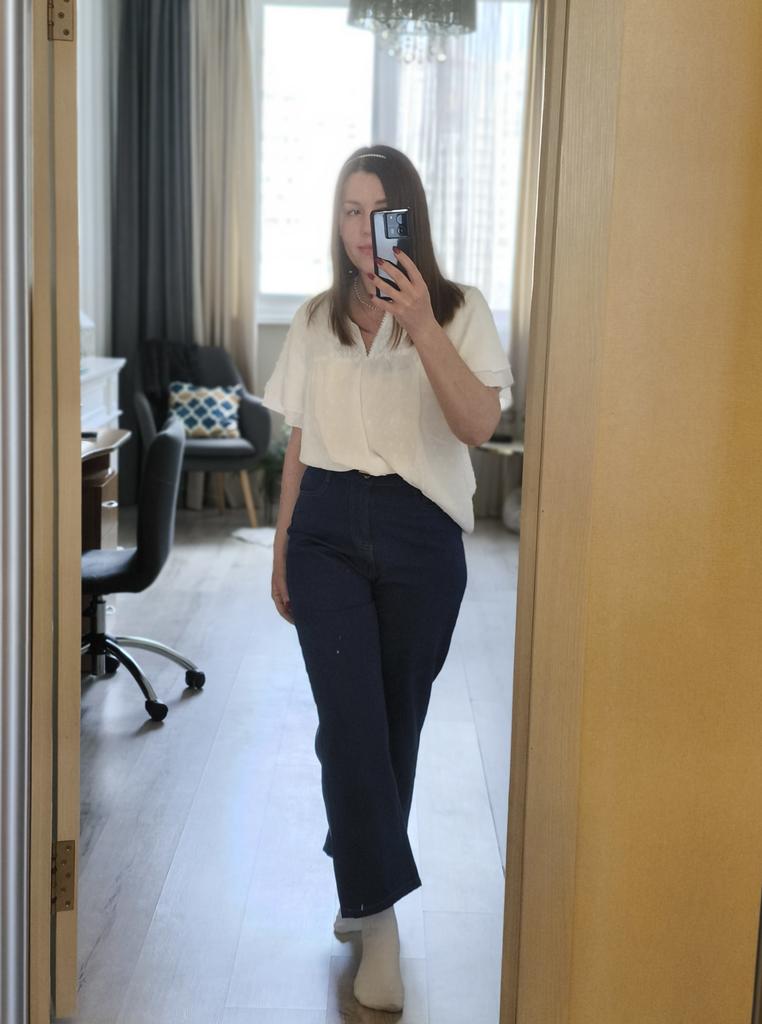 Women's High Waist Straight Leg Jeans, Loose Wide Leg Jeans, Light Blue Acid Wash Stretch Jeans with Pockets, Casual Office Trousers