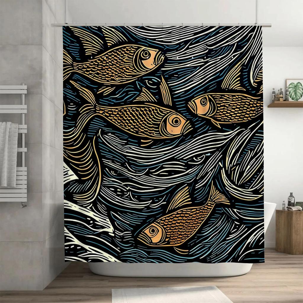 Modern Artistic Colorful Fish Pattern Waterproof Shower Curtain for Stylish Bathroom Decor, Easy Install