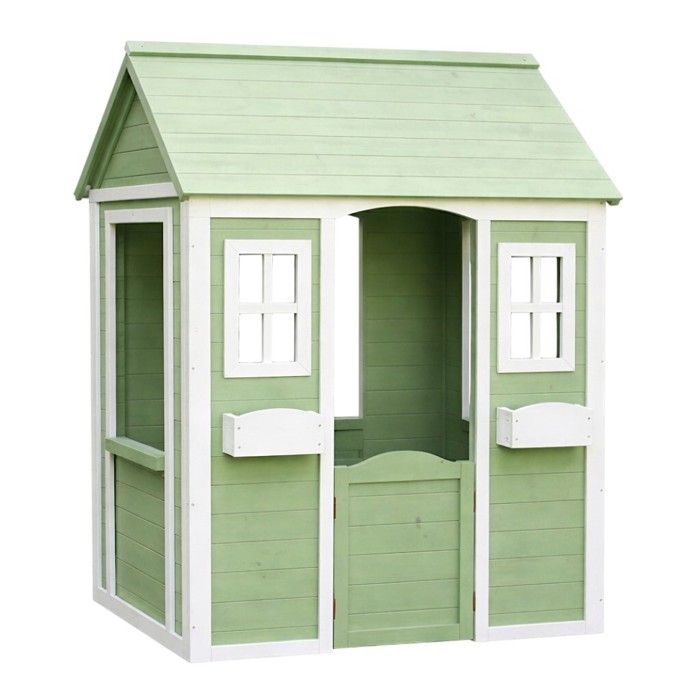 Maisonnette enfant - GINGER HOME - Bois massif - Vert et blanc - Extérieur 107 x 90 x 144 cm