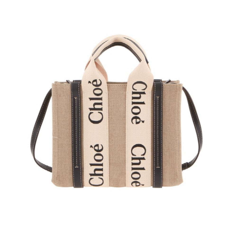 The Chloé Woody Small Top Handle Tote Bag is one of the brand's signature Woody series, combining elegant design and practical storage capacity for women. This bag is made from beige linen and canvas, giving it a clean and modern aesthetic. With its top handle design, it can be carried by hand or worn over the shoulder, and its lightweight material makes it versatile for various everyday styles.