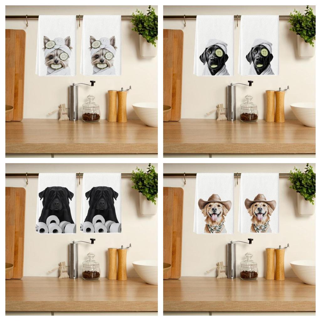 Assorted Cute Puppies Wearing Hats and Face Masks Tea Towels - Printed Kitchen Dish Towels and Rags