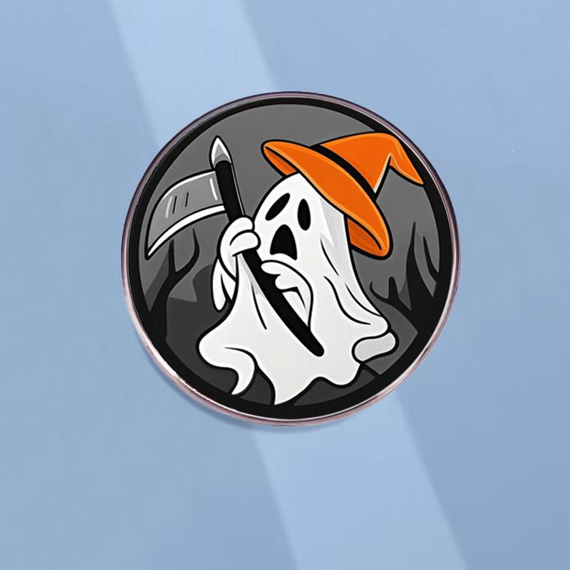 Halloween Cute Grim Reaper Pumpkin Head Brooch - Cartoon Scythe Metal Badge Accessories