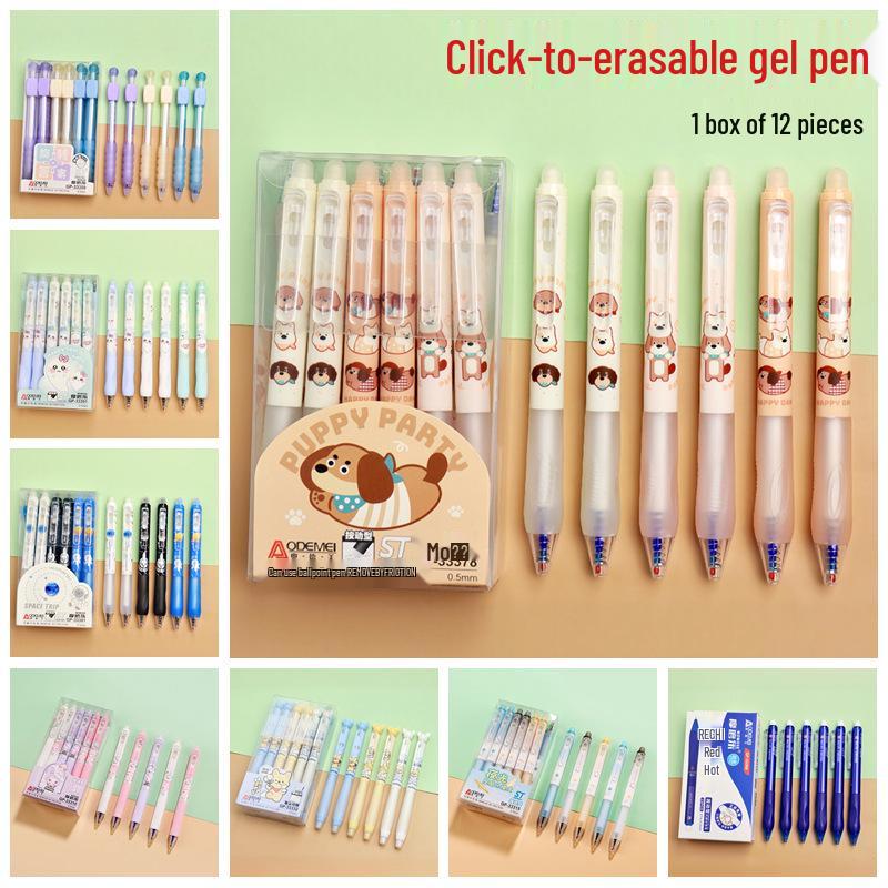 Thick Barrel Erasable Click Pen 0.5mm Bullet Tip, Blue/Black