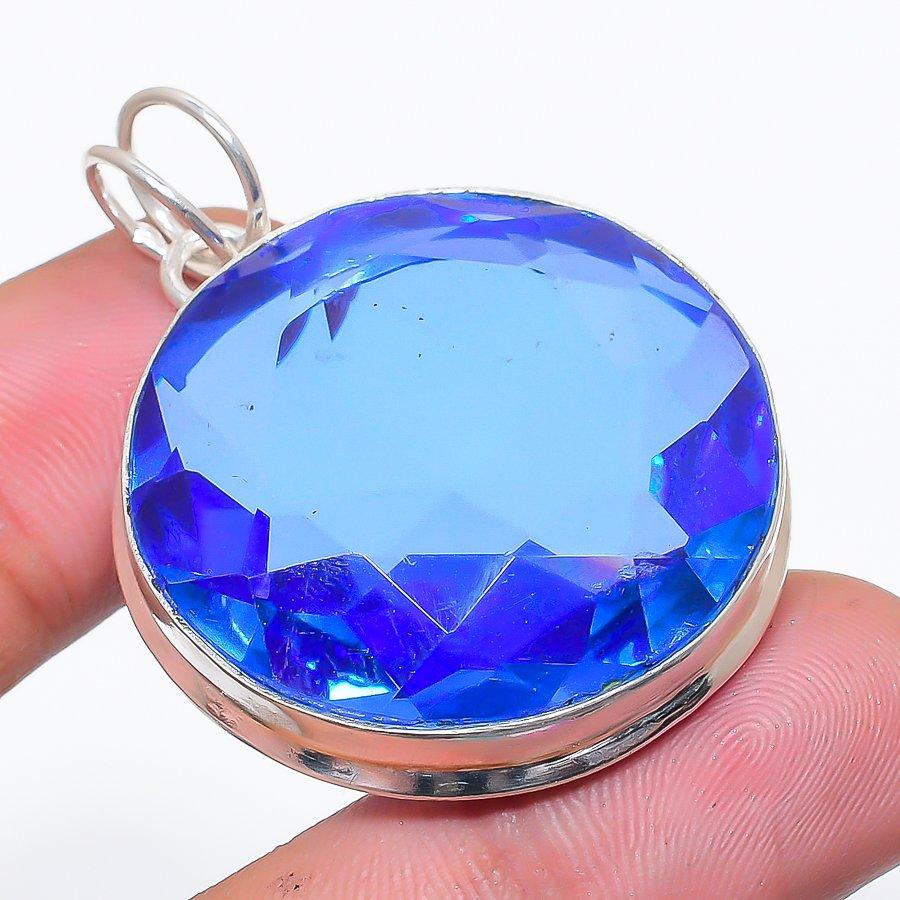 Natural Swiss Blue Topaz Gemstone 925 Sterling Silver Jewelry Pendant 1.85" AP-14210