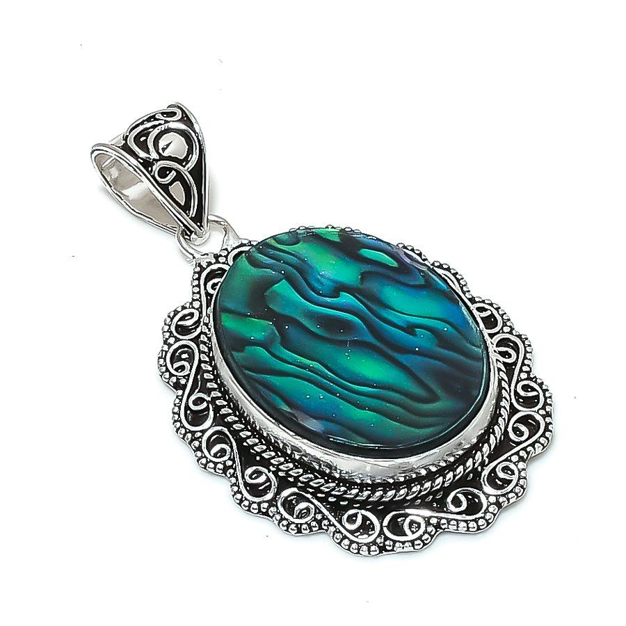 Natural Abalone Shell Gemstone 925 Sterling Silver Jewelry Pendant 2.25" ETC-14042