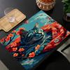 4PCS Cute Cat In Kimono Pattern Linen Placemat, Party Dining Table Decorative Mat, Bowl Mat, Heat-Resistant Dinner Plate Mat