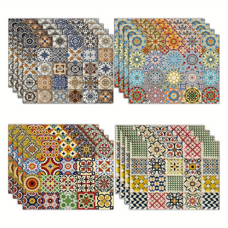 Elegant Chinoiserie Placemats 4Pcs Set Vibrant Blue & Green Floral Design Rectangular Table Mats for Dining & Home Decor