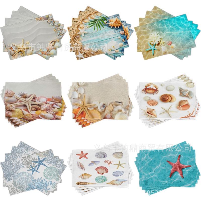 Hot Summer Beach Placemats Starfish Beach Theme Ocean Shell Printing Dust-proof and Heat-insulating Summer Placemats