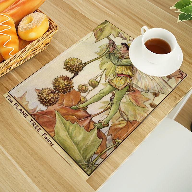 The Fairies Of The Winter Print Linen Dining Table Mats Alphabet Kitchen Placemat 30X45cm Coasters Pads Bowl Cup Mat