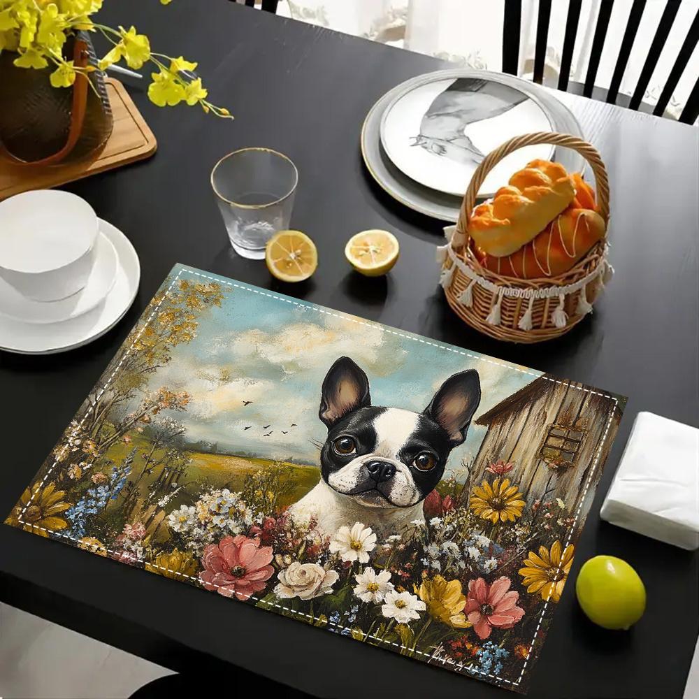 1pcs Boston Terrier Linen Placemats, Decorative Dog Design for Dining, Kitchen, Indoor Festivals, and Home Decor