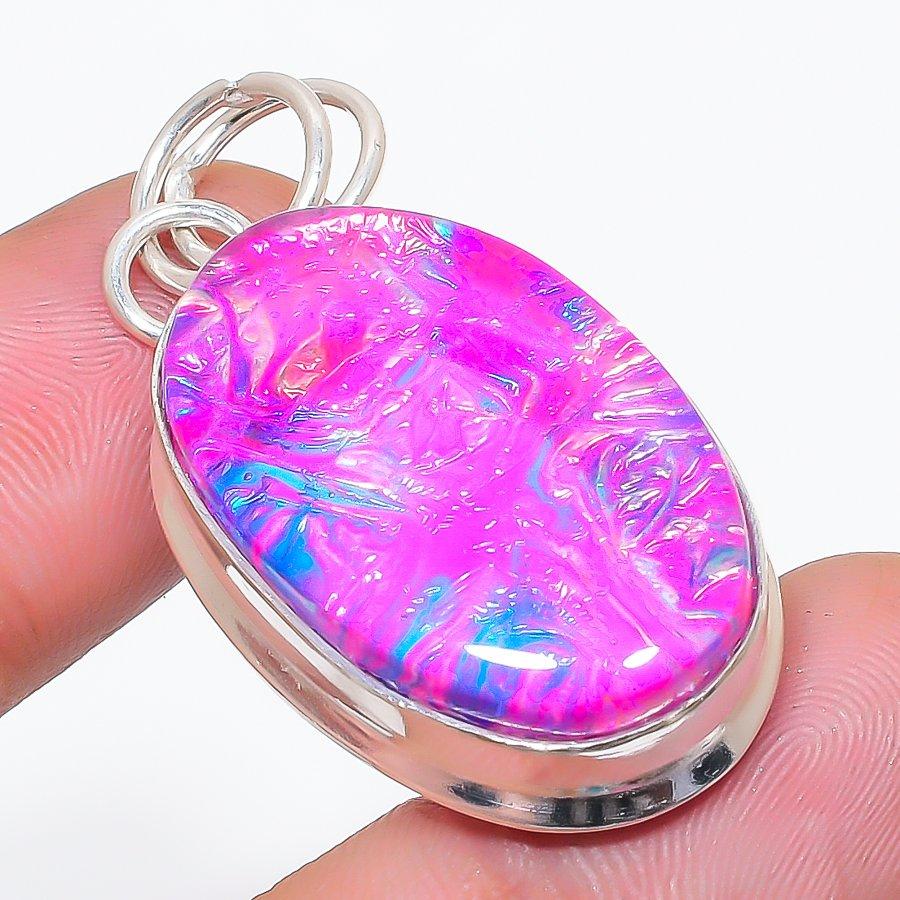 Natural Pink Triplet Opal Gemstone 925 Sterling Silver Pendant 1.85" AP-14230
