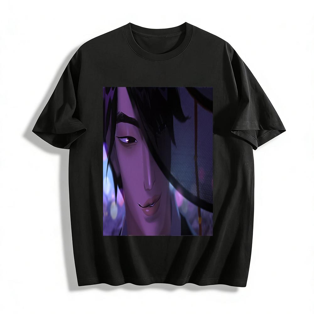 Anime Mysterious Handsome Guy Print Casual T-Shirt Trendy Anime Peripheral Loose Fit Top Pure Cotton T-shirt