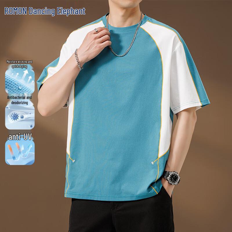ROMON Men's UV Protection Spliced Casual Short Sleeve T-Shirt