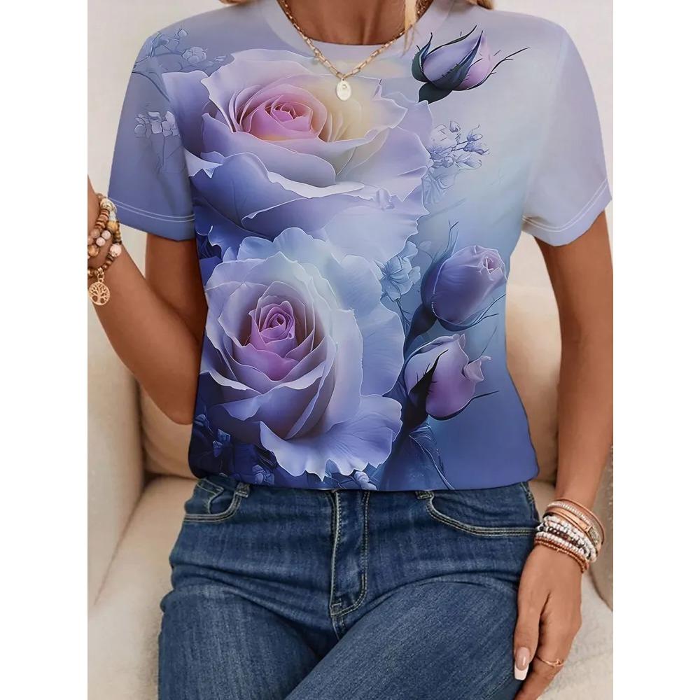 Creative Flower 3D Printed Short Sleeved T-shirt Fashionable Comfortable Soft Breathable Large Loose Womens T-shirt