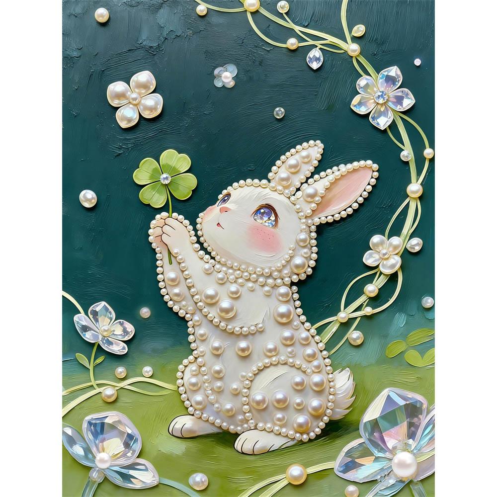 5D Frameless Pearl Painting Rabbit and Flower Diy Handmade Sticky Diamond Creative Canvas Art Painting Bedroom Decoration Living Room Hanging Painting