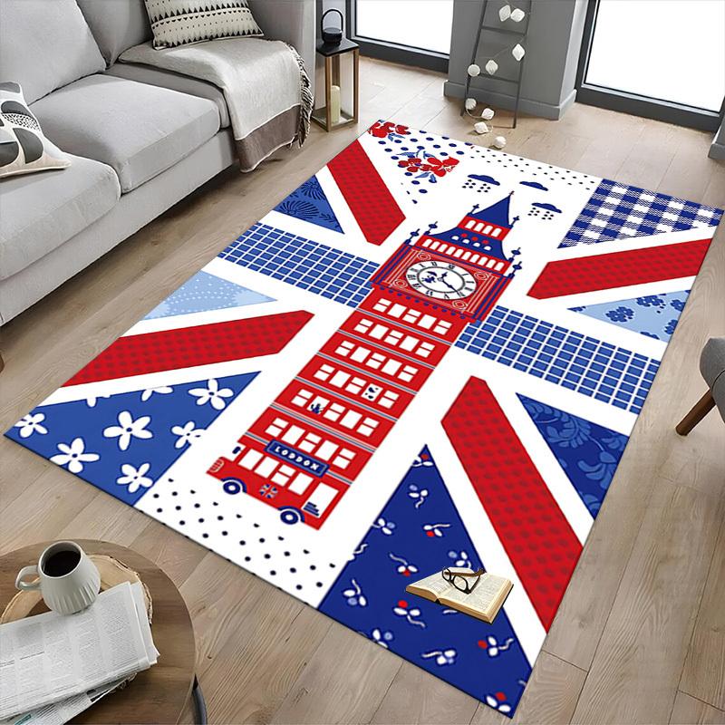 1PC Union Jack Big Ben Non-Slip Floor Carpet Compatible for Office&Living Room&Dining Room - Flat-Weave Machine- Soft & Pattern-E268