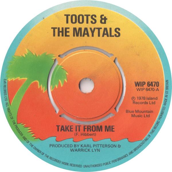 7inch Record TOOTS THE MAYTALS Take It From Me WIP6470 Island Records 1978 UK Reggae Ska Dub Used