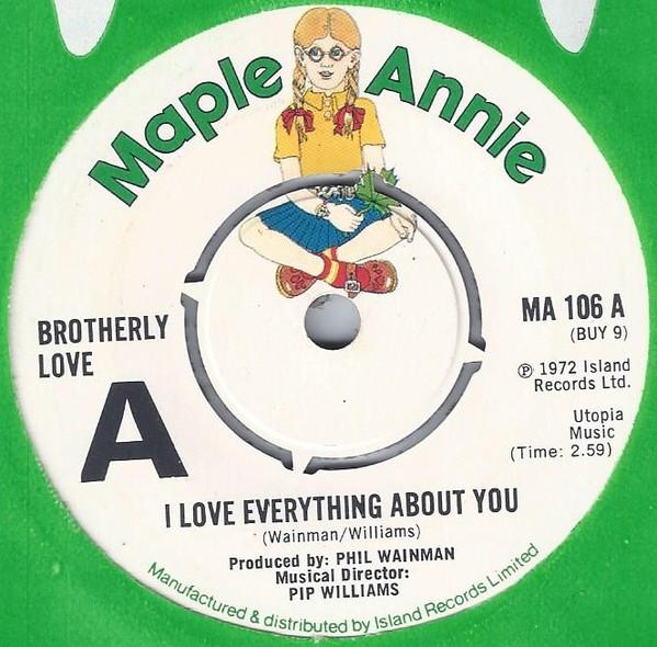 7inch Record BROTHERLY LOVE I Love Everything About You MA106 Maple Annie 1972 UK Pop Used