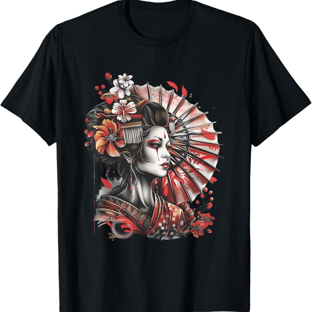 Geisha Art Sakura Cherry Blossom Kimono T-Shirt