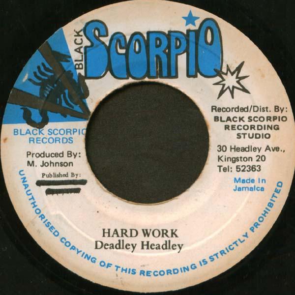 7inch Record DEADLY HEADLEY Hard Work NONE Black Scorpio Jamaica Reggae Ska Dub Used