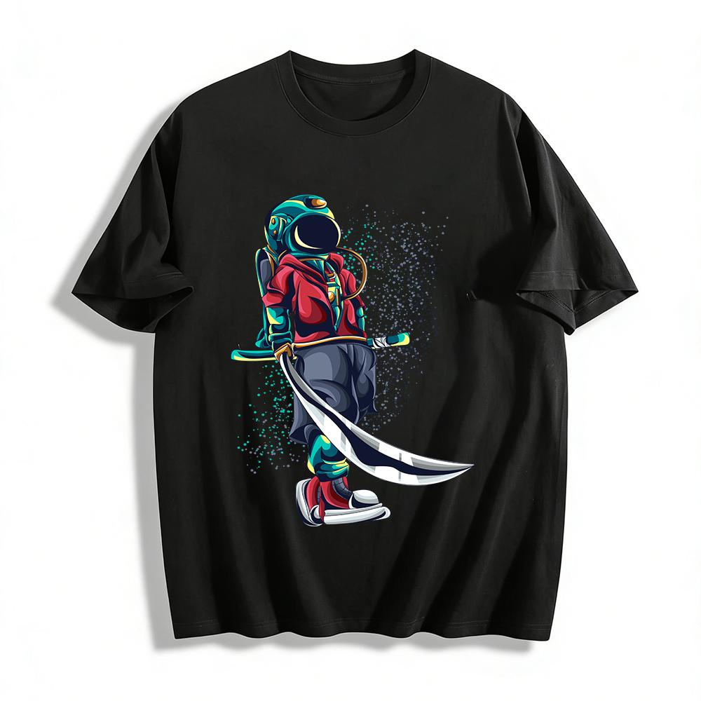 Trendy Astronaut Warrior Scimitar Print Unisex Casual T-Shirt Pure Cotton T-shirt