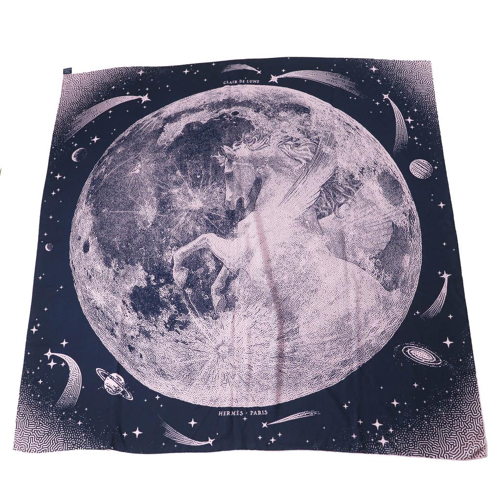 Excellent HERMES Scarf CLAIR DE LUNE Large Stole/ Navy Pink Cashmere Women Used