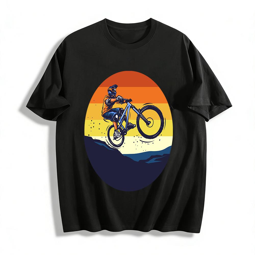 Vintage Mountain Bike Jump Print Outdoor Cycling Enthusiast Casual T-Shirt Pure Cotton T-shirt