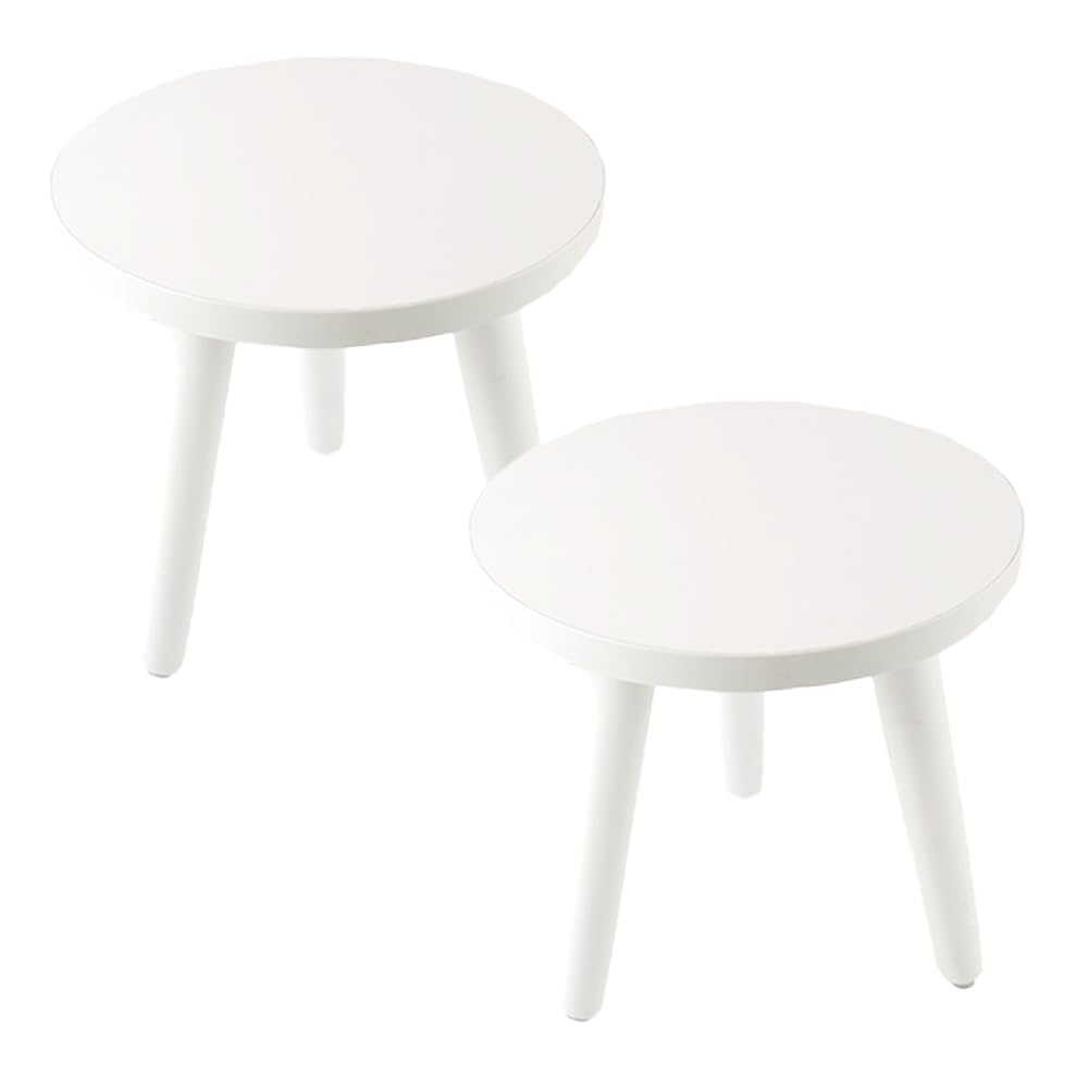 Nicheez Flower Stand Stool, Plant Stand, Wooden, Set of 2 (White)