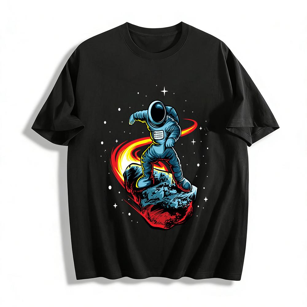 Astronaut On Meteorite Trendy Print Casual Unisex T-Shirt Pure Cotton T-shirt