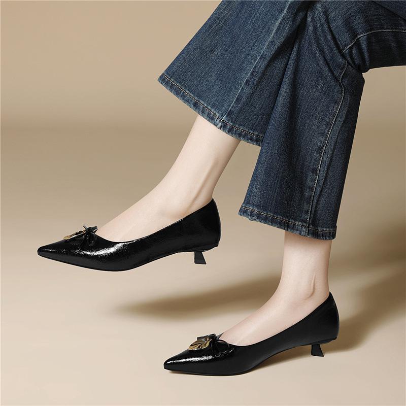 Black Stiletto High Heels Medium Heel Temperament Pointed Single Shoes Women's Niche Bow Exquisite French Women's Shoes