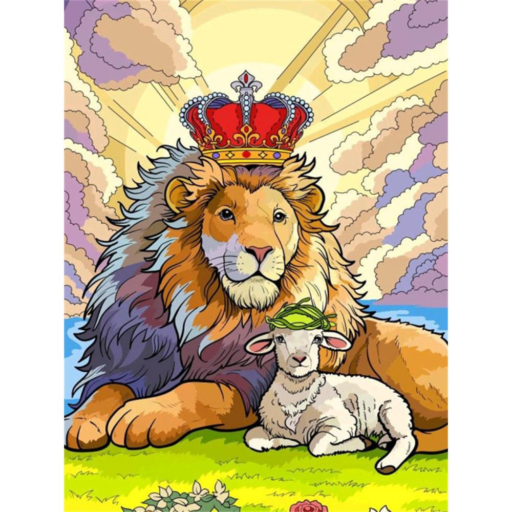 Disney 5D DIY Diamond Painting Lion and Lamb Creative Art Illustration Cartoon Full Diamond Mosaic Art Wall Decoration Set
