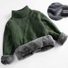 Boys' Handsome High Neck Thick Knit Sweater - Warm Velvet Lined Winter Wear for Medium & Large Children