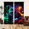 2pcs Dynamic Black Bottom Earphone Printed Translucent Curtains Multi-Scene Polyester Rod Pocket Decor Curtains for Living Room