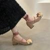 Camellia ballet gentle style with skirt thick heel single shoes women's 2025 new spring French shallow mouth Mary Jane shoes