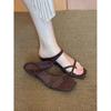 Retro thin strap open-toed sandals women's wedge heel two wear square head cool slippers special-shaped heels