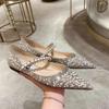 2024 New Spring and Autumn Pointed Rhinestone Chain Sequined Fairy Style Mary Jane Stiletto High Heel Wedding Shoes Stiletto