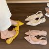 Fashion Versatile Womens Sandals with Anti Slip Slim Heel Close Toes Elastic Band Bow Summer Outdoor PU Fashion Sandals