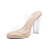 2025 summer new waterproof table transparent high heels women's thick heel nude versatile sandals with sandals