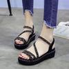Sandals women's 2025 summer new Korean version of muffin thick-soled rhinestone versatile one-word buckle student slope heel flat-soled women's shoes