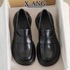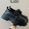 Leather brown small leather shoes platform heightening women's autumn new Mary Jane shoes Velcro single shoes