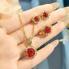 Vintage Light Luxury Full Diamond Fat Triangular Red Diamond Pendant Set, Advanced Sense Paraiba Lake Water Green Earrings Ring For Women