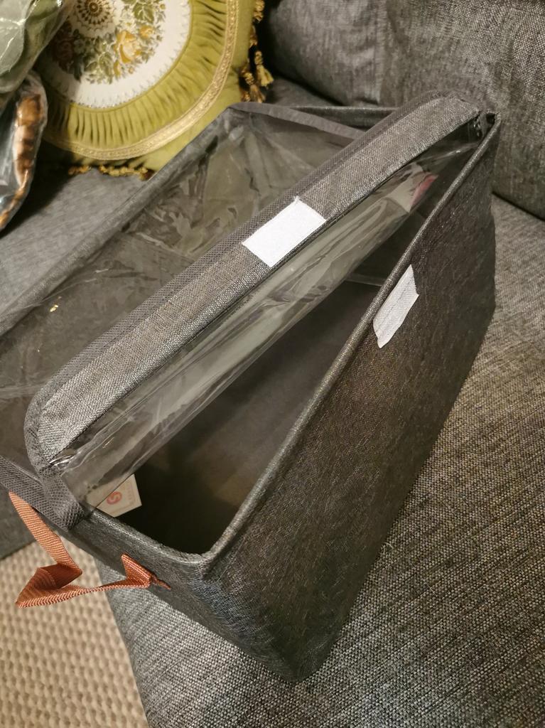 boîte pratique, fond rigide, avec poignées, couvercle transparent à velcro 👍
