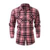 Spring and Summer Slim-fit Black and Red Polished Plaid Shirt Long-sleeved Double-pocket Large-size Cardigan