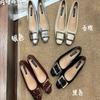 Square head single shoes female flat bottom summer shallow mouth hollow one foot stirrup fairy wind grandmother shoes