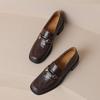 2024 Spring New Square Women Work Shoes Head Metal Buckle Single Women English Leather Shoes Thick Heel Loafers