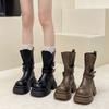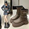 Autumn and winter fashion versatile leather boots British style thick-soled Martin boots women's belt buckle European and American style fashion bo