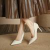 Professional commuter temperament high heels 2025 Korean version thin heel pointed fashion women's shoes black soft leather OL work shoes