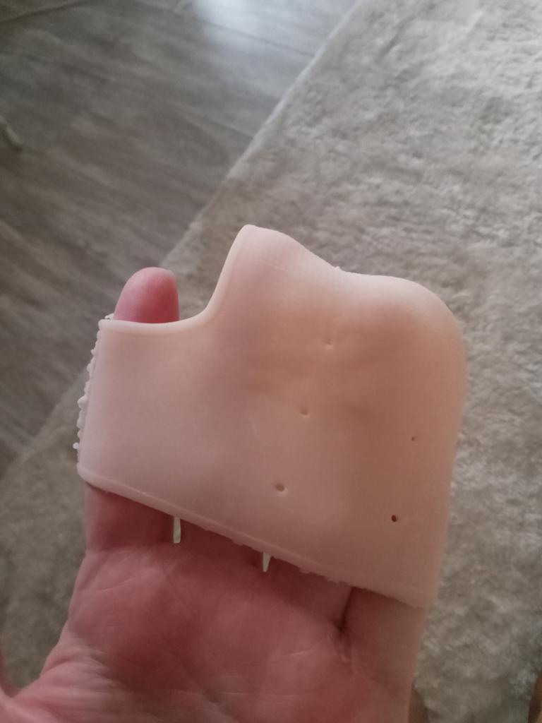 In generale, ciò che è arrivato non era quello che avevo ordinato, non corrispondeva alla foto. Nessun foro per le dita. Non è nemmeno chiaro come utilizzarlo. Come per i talloni, la punta è tagliata più della metà.
