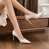 Mesh Pointed High Heels for Women 2024 New Sexy Lace White Wedding Shoes Banquet Dress Champagne Bridesmaid Shoes Female Pumps