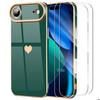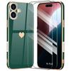 Coque de protection - BOOLING - pour iPhone 16 - Antichoc en Silicone Liquide - Vert Nuit - Cœur Doré